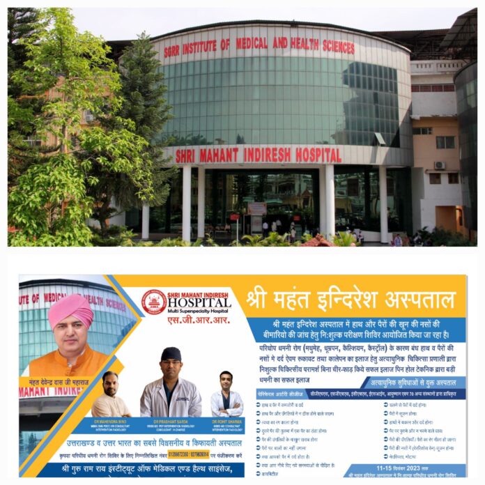 11-15 दिसंबर 2023 तक श्री महंत इन्दिरेश अस्पताल में निःशुल्क परिधीय धमनी रोग शिविर