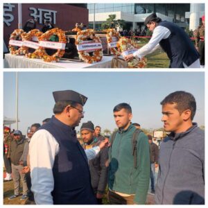 धामी सरकार हर पल सैनिक परिवारों के साथ खड़ी है, राइफलमैन गौतम कुमार और वीरेन्द्र सिंह के पार्थिव शरीर पर पुष्पचक्र अर्पित कर धामी जी ने श्रद्धांजलि दी