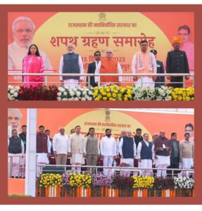 राजस्थान के मुख्यमंत्री के शपथ ग्रहण समारोह में शामिल हुये मुख्यमंत्री धामी,मुख्यमंत्री एवं उपमुख्यमंत्रियों को दी बधाई